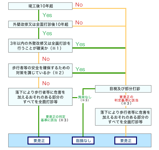 | ※3 | 要是正の判定基準。外壁タイル等に剥落等があること又は著しい白華、ひび割れ、浮き等があること。 |